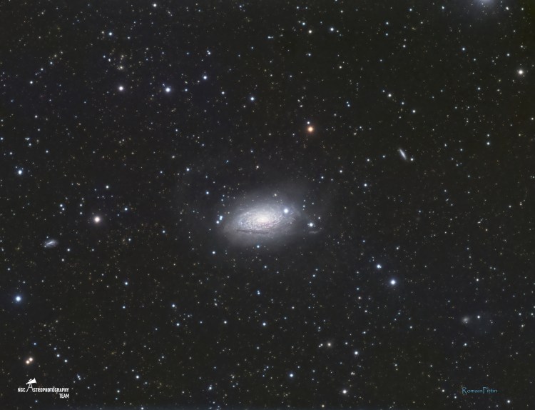 M63 est une galaxie spirale de type SAbc, une supernova qui atteignit la magnitude 11,5 qui a été observée le 24 mai 1971, permit d’en déduire la distance. Ses nombreux bras spiraux d’aspect granuleux sont riches de formation d’étoiles et en régions HII.