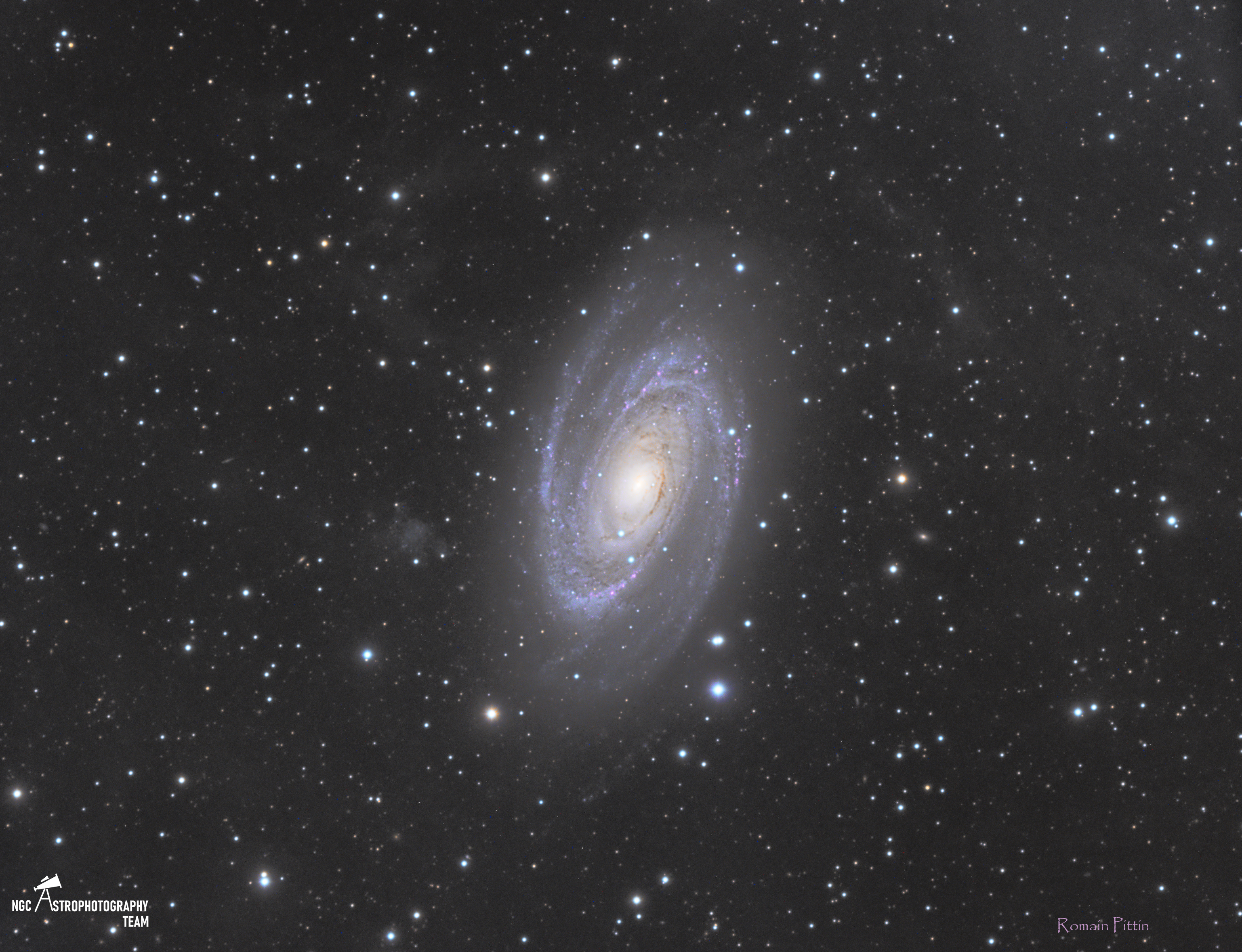 M81 est une galaxie spirale d’un diamètre relativement modeste de 60 000 années-lumière. L’observation d’une trentaine de céphéides par le télescope Hubble a permis d’estimer la distance de la galaxie à 11,8 millions d’AL, ce qui en fait l’une des plus proches de la nôtre. Elle fait partie du même groupe de galaxies que M82. Ce groupe fait partie du superamas de la Vierge, comme notre groupe local. En raison de l’effet de marée dû à la proximité d’une autre galaxie moins massive (~150 000 al), la répartition de la masse de la galaxie n’est pas homogène. Le noyau de la galaxie abriterait un trou noir de 60 millions M⊙.
