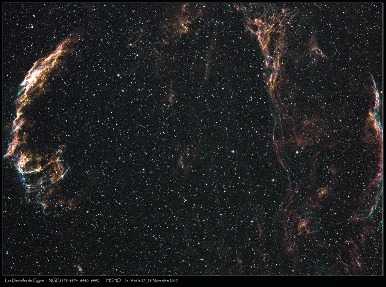 Triangle de Pickering dans la Constellation du Cygne, il partage avec la Petite Dentelle, la désignation de NGC 6960. Le nom de l’ensemble des dentelles, rémanent de supernovae est SNR G074.0-08.6, dont l’explosion remonterait il y a environ 10 000 ans.